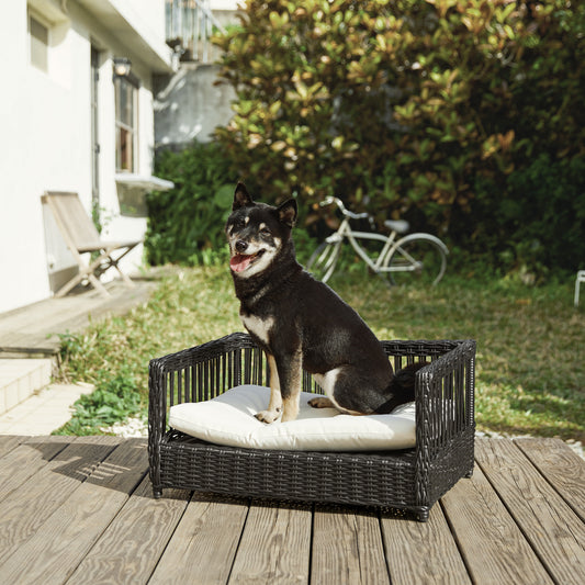 Teamson Pets Rattan Woven Dog or Cat Bed & Cushion
